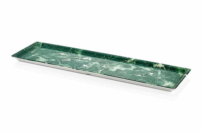 Melamina especial, resistente a roturas, grietas y astillas en las esquinas y bordes. La amplia gama de productos y formas permite a los profesionales crear presentaciones elegantes. El objetivo claro es el de producir utensilios de cocina y buffet decorativos y duraderos, con el fin de servir y al mismo tiempo proporcionar una perspectiva estética.